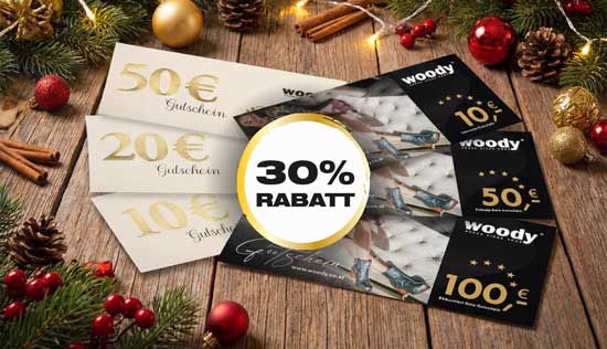 Jetzt woody® Gutscheine kaufen und 30% Rabatt erhalten!