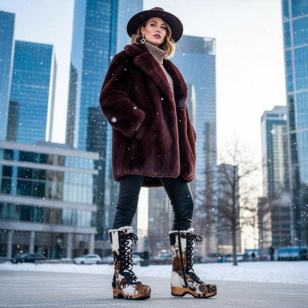 <p><strong>Stiefel</strong> aus hochwertigem <strong>bedruckten Fell </strong>oder<strong> Natur Fell</strong> mit kuschelig warmem <strong>Lammfellfutter, Rei&szlig;verschluss</strong> innen &amp; <strong>zum Schn&uuml;ren</strong>.</p>