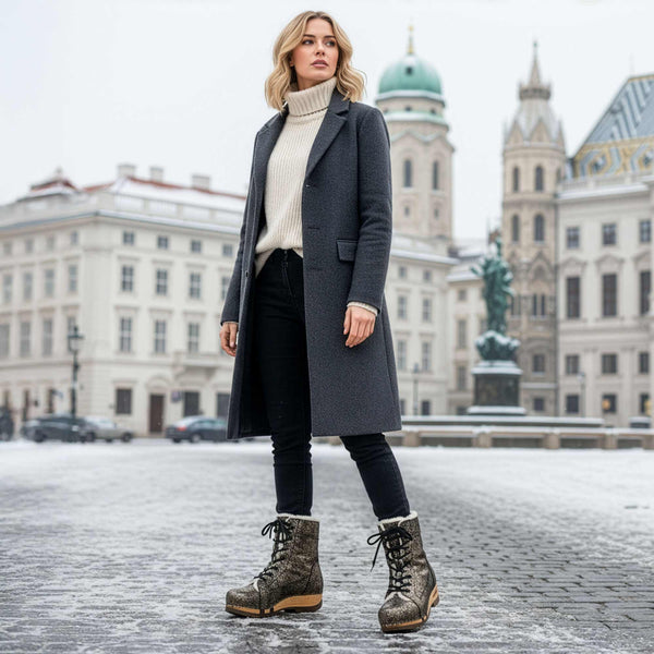Women's Ankle Boot Heike with a 4.5 cm heel height is a true savior for cold toes on freezing winter days. With the Women's Clog Heike, you are not only right on trend but can also enjoy top comfort and functionality. Whether for a walk or at the mulled wine stand, you will feel comfortable in Heike boots. The wooden shoes feature an ergonomic wooden footbed and a flexible, bendable wooden sole - from woody shoes. Naturally made from genuine natural leather and lined with cozy lambswool lining. All ankle boot models, handmade and crafted from finest leather with flexible wooden sole and heel, can be found under: Women's Ankle Boots by woody Shoes.